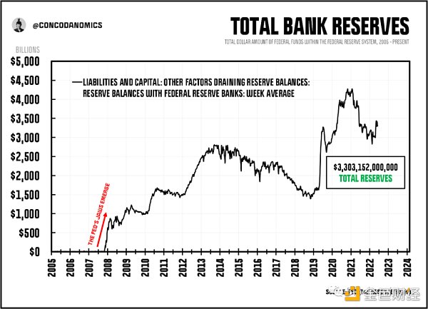 在美聯儲進行了一次大規模的全球金融機器重啟之后,未擔保美元融資體系注定要失敗了。央行官員通過向銀行間系統注入數萬億美元的「銀行準備金」,即銀行僅用于結算付款的貨幣,導致了「過剩準備金」時代的金融市場開始到來。