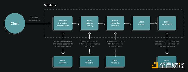 AptosBFTv4 是第一個具有嚴格正確性證明的生產區塊鏈 BFT 協議,該協議是樂觀響應的,允許它提供低延遲和高吞吐量,充分利用底層網絡。 在 Hotstuff 上進行改進,Aptosv4BFT 將提交延遲從 3 步減少到 2 步,在不犧牲通信補償的情況下減少了 33% 的延遲。