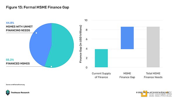 因此,獲得 TradFi 貸款不僅昂貴,而且耗時。數據顯示,平均一周內只有大約 7% 的 TradFi 貸款得到處理,多方參與會導致貸款成本激增。此外,在與借款人有現有關系的金融機構申請新的信貸額度可能仍需要再次通過整個 5C 審查周期。所有這些流程的運營成本很可能會在最終的貸款定價中由借款人承擔,因為 TradFi 貸款(至少是合法貸款)被老牌金融機構高度壟斷。因此,總計的成本很可能由借款人在總貸款定價中承擔。