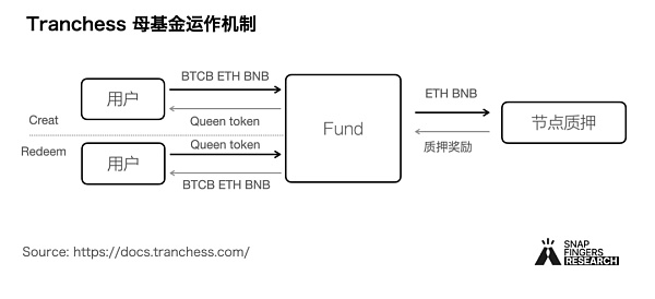 Tranchess 是運行在 BNB 鏈和以太坊上的一個資產價格追蹤與管理協議,目的是為不同風險偏好的用戶提供不同的收益回報,讓手頭有 BNB、BTC、ETH 甚至 穩定幣(如 BUSD 或 USDC) 的用戶將能夠找到最適合他們在風險狀況與回報方面需求的合適產品。Tranchess 的概念最初于 2020 年初被構思出來,并迅速發展到了現在的狀態。受到分級基金能夠滿足用戶不同風險偏好的啟發,Tranchess 通過一個跟蹤特定基礎資產(例如 BNB)的主要基金,提供不同的風險/回報矩陣。針對 BNB 和 ETH 基金,Tranchess 通過運行 PoS 節點,使基金能獲得質押收益。