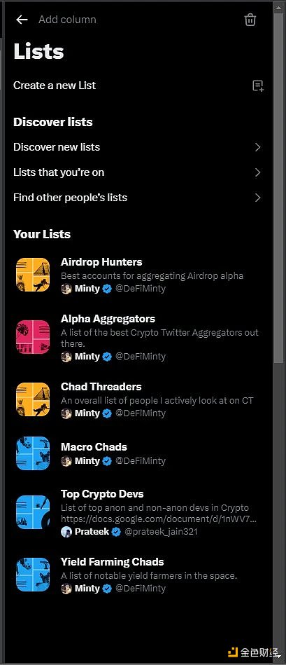 你可以將關注的 Kol、標簽添加到一個列表,讓你可以在一個頁面中隨時了解最新動態。