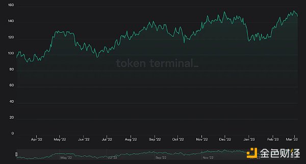 Cosmos 擁有先發優勢,此前已經積累了一定數量的開發者。且一些類似 dYdX 這樣的超級應用已經開始著手遷移至 Cosmos 生態。據 tokenterminal 數據統計,Cosmos 的每日活躍開發者在過去的一年中仍然保持著穩定的數量。