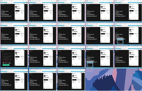 有人在推特和社區中分享自己申請Aptos測試網的截圖,可以看到多個小號在VPS主機上的申請界面。據申領代幣的社區用戶反饋,Aptos的空投規則是每個測試網申請的賬戶可以獲得300個代幣,鑄造NFT的用戶有150個代幣。那么如果你有一百個賬號就可以獲得3萬個代幣,一千個賬號則是30萬個代幣。