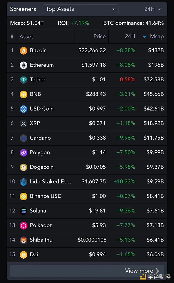 市場幣價方面,由于美國政府采取措施保護破產的硅谷銀行的存款人,并且匯豐銀行收購了該銀行的英國業務,加密貨幣市場出現了反彈。比特幣上漲近 10 %,報 22, 560.20 美元,為期 10 天的最高水平。以太坊也上漲約 10% ,報 1, 614.89 美元。