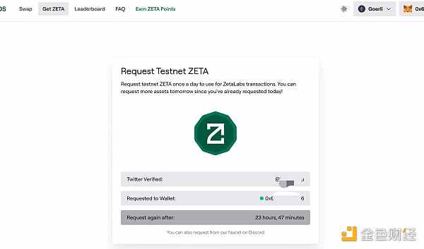 進入 Zeta 網站,點擊 Get ZETA,驗證和授權推特和連接以太坊賬戶;