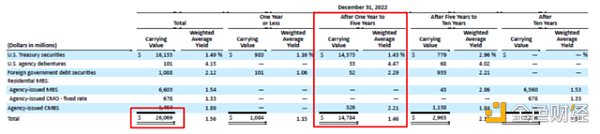 硅谷銀行的最新年報顯示,其投資組合中超過一半都是 1 年期到 5 年期的無風險國債。現在看來,該行對這類固定收益資產的高配置比例幾乎已經超過了安全警戒線。