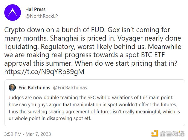 交易量從 1 月 18 日的高點繼續呈下降趨勢,shapella 之后意外的巨大獎勵拋售壓力可能會破壞撤資是凈利好的整個敘事,導致可能考慮過出價的交易員感到擔憂,并創造一個自我實現的下行螺旋預言。