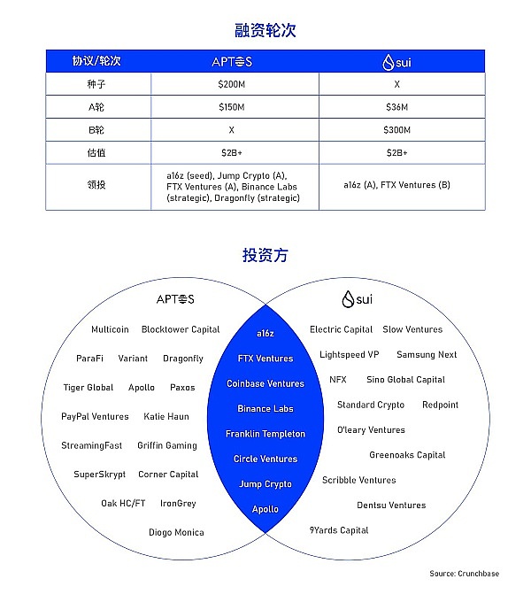 Sui的團隊Mysten Labs 于 2021 年 12 月宣布完成 3600 萬美元 A 輪融資,由 a16z 領投,Coinbase Ventures等參投。22年8月,完成了3億美元B輪融資,投資方包括a16z crypto, Jump Crypto, Binance Labs, Coinbase Ventures等。