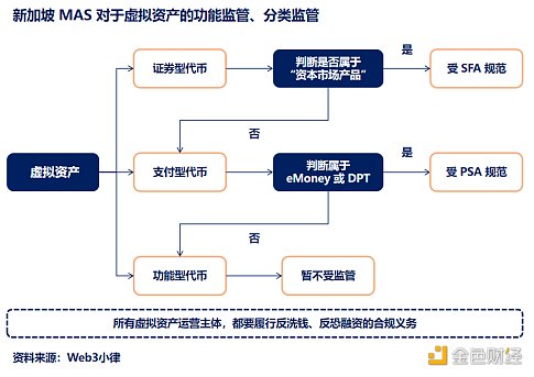 新加坡金融管理局(Monetary Authority of Singapore, MAS)是新加坡的中央銀行和綜合金融監管機構,同時負責監管 Web3 行業。MAS 對虛擬資產采取功能監管、分類監管的思路,從而進行合法化的監管,但區別于貨幣。MAS 根據虛擬資產的功能和特征將其分為三類:(1)證券型代幣(Security Token);(2)支付型代幣(Payment Token);(3)功能型代幣(Utility Token)。