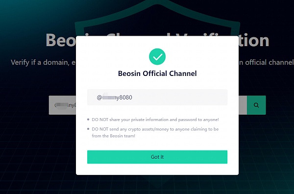 客戶可以輸入與您聯系的Beosin的員工名片信息,如果通過驗證,那就是安全的。