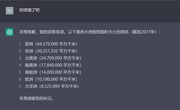 ChatGPT:開始回答了錯誤的答案,與其對話后成功糾正(AMAZING!)