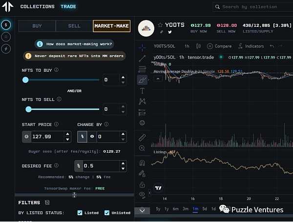 對于專業交易員來講,除了需要批量買賣的功能外,他們需要更加?級的掛單功能,?如像sudoswap那樣的bonding curve,具有復雜邏輯的買單,或者是可以?動成交的限價單。這些可以參考Tensor的?些功能。
