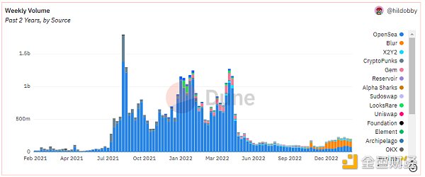 不同鏈上的NFT交易所們的競爭情況各有不同,本文主要專注于Blur的估值,因此此處主要討論Ethereum鏈上的行業競爭情況。