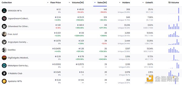 24小時內銷售前十的NFT 數據來源:NFTGO