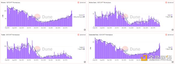 x2y2 的總體統計數據是積極的。不僅交易量和費用全面上升,x2y2 的交易量已經輕松超過了 LooksRare,而其市值僅為后者的一小部分。除此之外,他們最近還推出了一個 NFT 借貸平臺,該平臺一直在穩步增長。