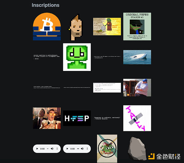 Ordinals 上的 NFT 稱為「銘文(inscriptions)」,并分配給特定 satoshis。這是關于比特幣的最新銘文,包括圖像、音頻、視頻、pdf 等。這些是真正存儲在比特幣區塊鏈上,并由所有全節點存儲,它們不是指向服務器上圖像的鏈接。來源:ordinals.com