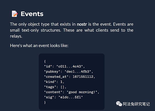 The event(事件種類)是nostr中最有趣的部分之一,這是一個字段,可以指定具體是哪種事件,為啥有趣,因為這樣就說明,事件種類不受限制,我們可以設計任何我們想要的種類。