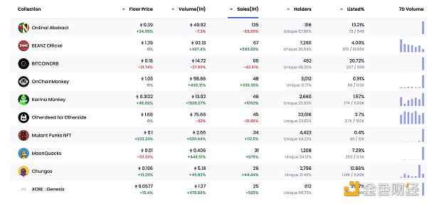24小時內銷售前十的NFT 數據來源:NFTGO