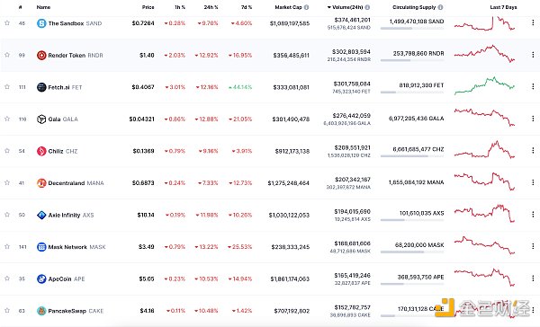 24小時NFT交易量、交易量前十項目 數據來源:Coinmarketcap