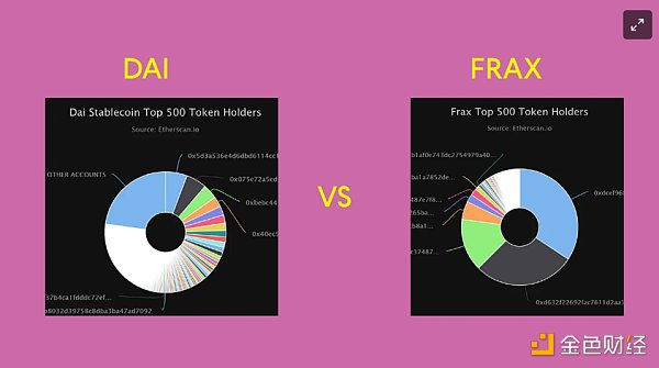 對持有者進行比較分析可以看出:DAI主要保存在個人錢包里,而FRAX的供應集中并鎖定在智能合約中。