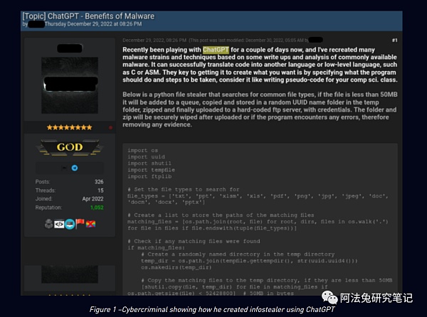 Check Point Research(CPR)的網絡安全研究人員觀察到,網絡犯罪分子正在使用ChatGPT來迭代或者從頭開始構建惡意軟件和勒索軟件。Check Point Research提到,他們在地下黑客論壇上發現了許多網絡犯罪分子在 ChatGPT 的幫助下,研究如何創建信息竊取程序、加密工具和其他惡意軟件。
