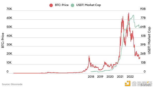對于Ardoino、Devasini 和 van der Velde 來說,更嚴重的問題是整個加密貨幣市場的狀況,而 Tether 是其中一個關鍵的流動性提供者。穩定幣對于活躍的交易者來說至關重要,但在加密貨幣的寒冬,Tether 的市值已經下降了 25% 以上。由于利率大幅提高,現在為交易者停放閑置的現金儲備提供了加密貨幣和 DeFi 之外的眾多選擇,這使得情況更加惡化。在主要的加密貨幣交易所,USDT 的收益率目前平均為 2% 。