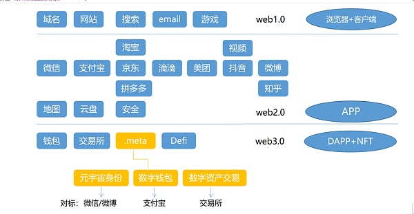 雖然目前全球尚未對元宇宙形成一個準確的共識性概念,但從字面來理解,元宇宙(Metaverse)就是Meta(超越)和verse(宇宙)的結合,是超越于現實世界的另外一個宇宙。具體來說,元宇宙可以理解為是人類運用數字技術構建的,由現實世界映射或超越現實世界,可與現實世界交互的虛擬世界 ,具備新型社會體系的數字生活空間。.Meta域名是進入元宇宙的基礎設施。通過與區塊鏈應用DAPP(如區塊鏈交易所、錢包、游戲等)、NFT數字藏品、元宇宙開發平臺合作,元宇宙將在.Meta域名基礎上組建,引領Web3.0時代,因此.Meta將成為元宇宙最重要的資產,也是幫助人類遨游元宇宙,享受元宇宙時代發展紅利的前提。