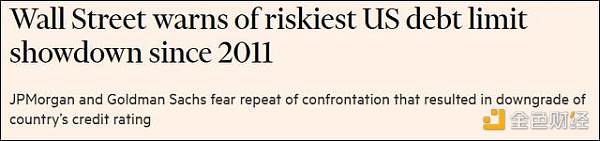 XRP/HKD-3.05%據英國《金融時報》1月27日報道,美國華爾街多家投資銀行日前警告稱,美國政府正走向2011年以來風險最高的債務危機,國會兩黨日益激烈的對抗和經濟環境的變化可能導致美國發生債務違約,這很有可能引發經濟“嚴重衰退”。