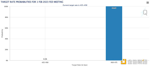 市場已經開始嗅出美聯儲態度的這種變化,年初美元和收益率下跌,債券、黃金、股票和加密貨幣價格上漲。 市場目前預計 2 月 FOMC 會議將加息 25 個基點,并在今年晚些時候降息。