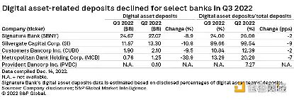 · Silvergate Bank 的 2022Q3 客戶數字資產存款為 119 億美元,而最近披露的 Q4 數據顯示該存款降至 38 億美元,環比下降 68%