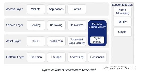 如圖3所示,PBM由兩個主要組件組成:定義預期用途的包裝器;和作為抵押品的底層價值存儲。這種設計允許現有的數字貨幣在不改變其本地屬性的情況下,被部署用于不同的目的。一旦PBM被用于其預期的目的,數字貨幣可以在沒有任何條件或限制的情況下使用。數字貨幣發行者保持對數字貨幣的控制,防止了碎片化,確保了易于維護。