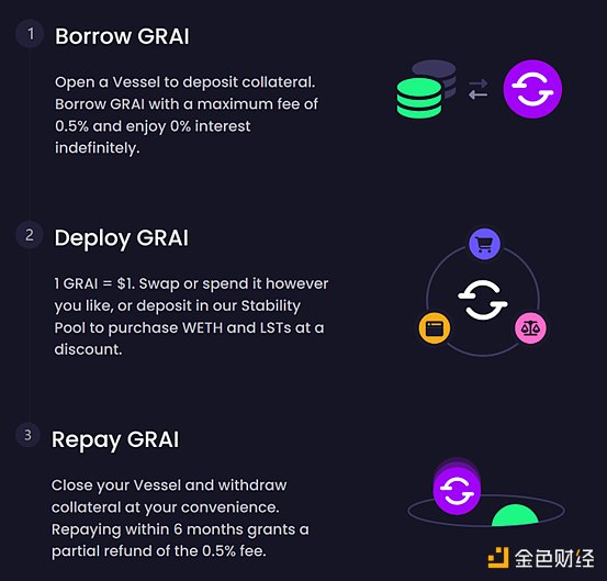 Gravita是基于以太坊上的去中心化借貸協議,可以提供無息貸款,由Liquid Staking Tokens(LST)和Stability Pool(SP)共同擔保。貸款以鑄造GRAI的形式發放,貸款額度可以達到用戶抵押物價值的90%。