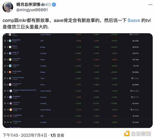 至于 Aave,有用戶表示,Aave 作為比 Compound 更大的借貸平臺,一方面可以獲得 Compound 的流量,另一方面 Aave 本身也很可能會有新的敘事。