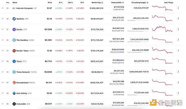 NFT總市值、市值排名前十項目 數據來源:Coinmarketcap