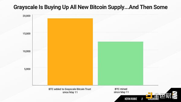 加密貨幣研究員Kevin Rooke表示,自減半以來,灰度旗下的比特幣信托購買了18,910枚比特幣。而自減半以來,僅挖出了12,337比特幣。這意味著,灰度投資在比特幣第三次減半后增持的比特幣數量為同期礦工開采比特幣總量的150%。
