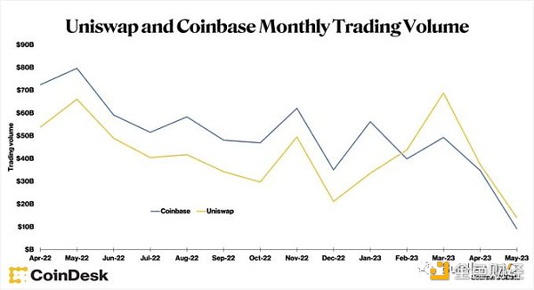 無疑,當下的加密市場處于深熊階段,流動性萎縮疊加 SEC 監管升級都如同烏云籠罩在整個市場上空。與此同時,Uniswap 的交易量已經連續四個月超過 Coinbase,在監管壓力之下,優秀的 DeFi 產品愈發證明其價值。時至今日,我們依然可以毫不吝嗇地說,Uniswap 是以太坊上最偉大的用例之一。