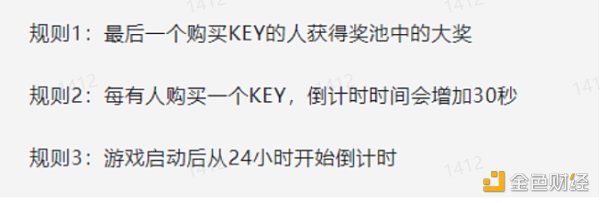 每當有玩家購買 Key,游戲剩余時間增加 30 秒,最大 24 小時(前 2 個機制基本上決定了這個游戲很難真正停止了);