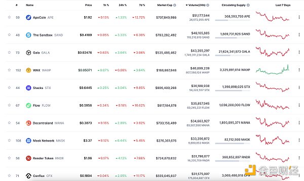 24小時NFT交易量、交易量前十項目 數據來源:Coinmarketcap