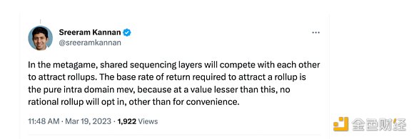 我不認同這種觀點,因為rollup是否可以接收回它的域內MEV最終取決于共享排序器的網絡效應,這還有待觀察。