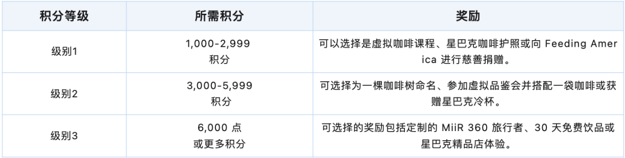 用戶可選擇的權益也很新穎,除了常見的實物獎勵,還包含多種帶有品牌文化宣傳的數字獎勵,像虛擬咖啡制作課程、獲得獨特的商品、與藝術家合作、受邀參加星巴克臻選烘焙工坊的獨家活動等。