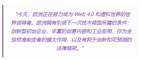 關于新的Web4技術前沿的引入,歐盟內部市場專員蒂埃里·布雷頓(Thierry Breton)這樣評論道: