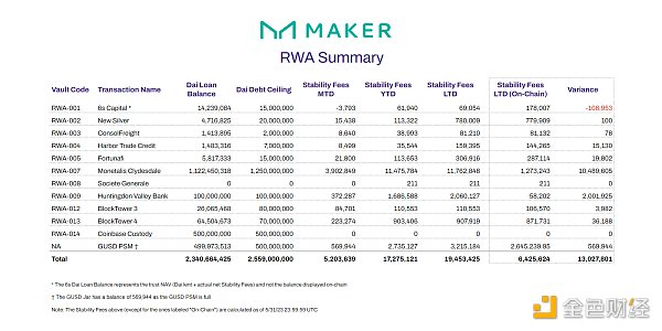 根據官方數據,截至 5 月,MakerDAO 在 RWA 投資組合總額達到 23.4 億 DAI,主要用于購買美國國債。據 makerburn 的統計,MakerDao 單從 RWA 獲取的預測年化收入就高達近 7100 萬美金,已成為其協議重要的收入來源。