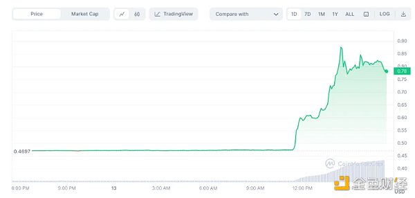 因此,XRP 的價格在裁定結果公布后出現了劇烈的上漲,從約 0.47 美元飆升至 0.87 美元, 24 小時漲幅超過 80% 。Coinbase 隨后宣布,將重新上架 XRP 交易對,并在北美時間今日開始交易。目前,XRP 的價格在 0.8 左右波動。