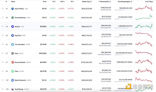 24小時NFT交易量、交易量前十項目 數據來源:Coinmarketcap