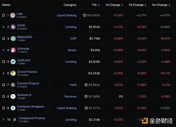 DeFi總市值及前十代幣 數據來源:coingecko