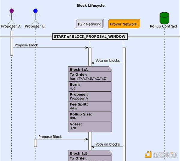 其中,BPW(區塊提議)階段是多個定序器Seuqnecer提出不同的區塊并競爭、Prover選擇某個備選區塊給出投票的過程。