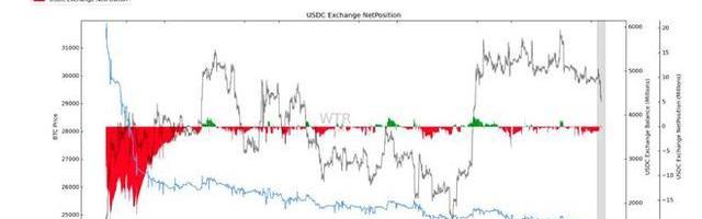 USDC交易所凈頭寸呈現流出累積的狀態。