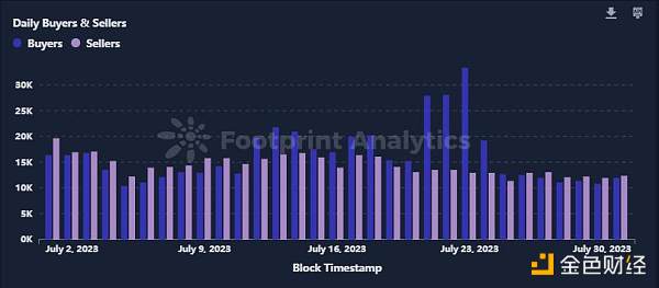 7 月份,NFT 市場呈現出 149.13%的買家/賣家比例,共有 299,983 名買家和 201,155 名賣家,超過了過去 90 天的比例。