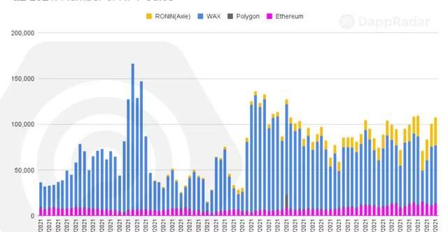 而Wax已成為GameFi活躍的絕對市場領導者,同比上季度增長1,082%錢包活躍地址至306,707個,活躍度和交易頻次是當之無愧的王者。