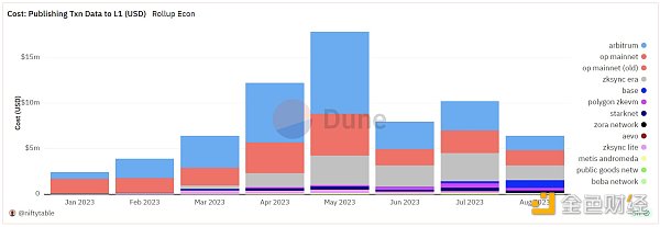 L2本質上是手續費雁過拔毛的生意。Arb、OP每月靠這個抽走100萬美金左右; 而風頭更盛的Base和ZK則能每月抽走200-300萬美金規模。
